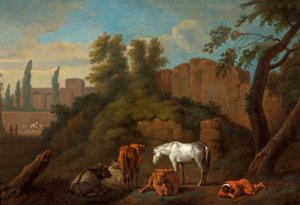 Jacob vanner Labans sauer før skrellede grener, c1612-1622(Jacob Watering Labans Sheep before Peeled Branches, c.1612-1622 )Pedro Orrente |