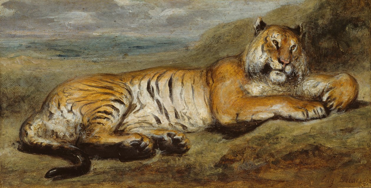 Tiger hviler, ca. 1830.(Tiger Resting, c. 1830. )Pierre Andrieu |