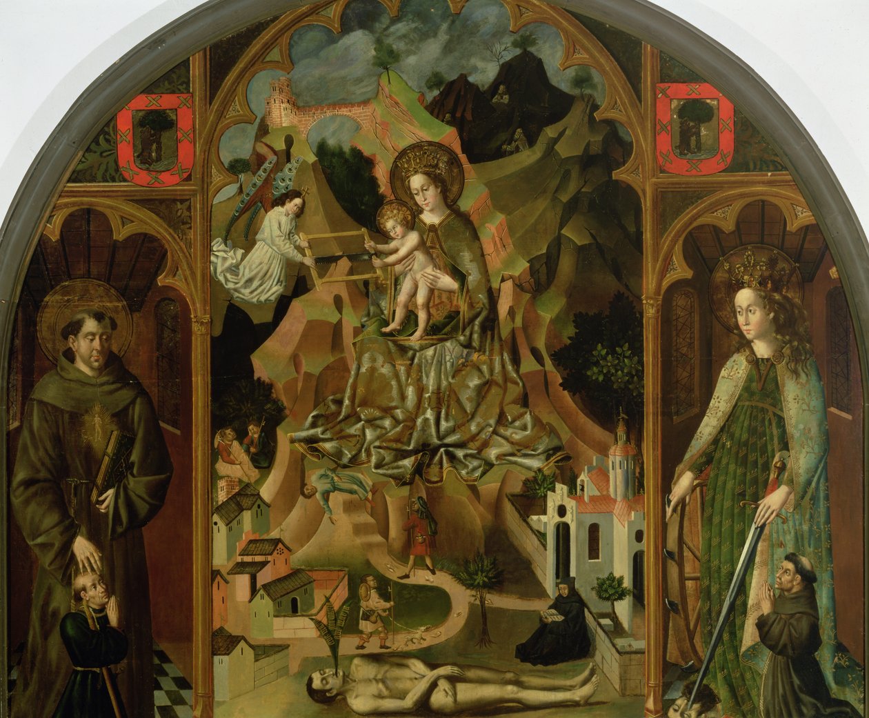 Jomfruen av Montserrat med landskap (panel)(The Virgin of Montserrat with landscape (panel))Spanish School |