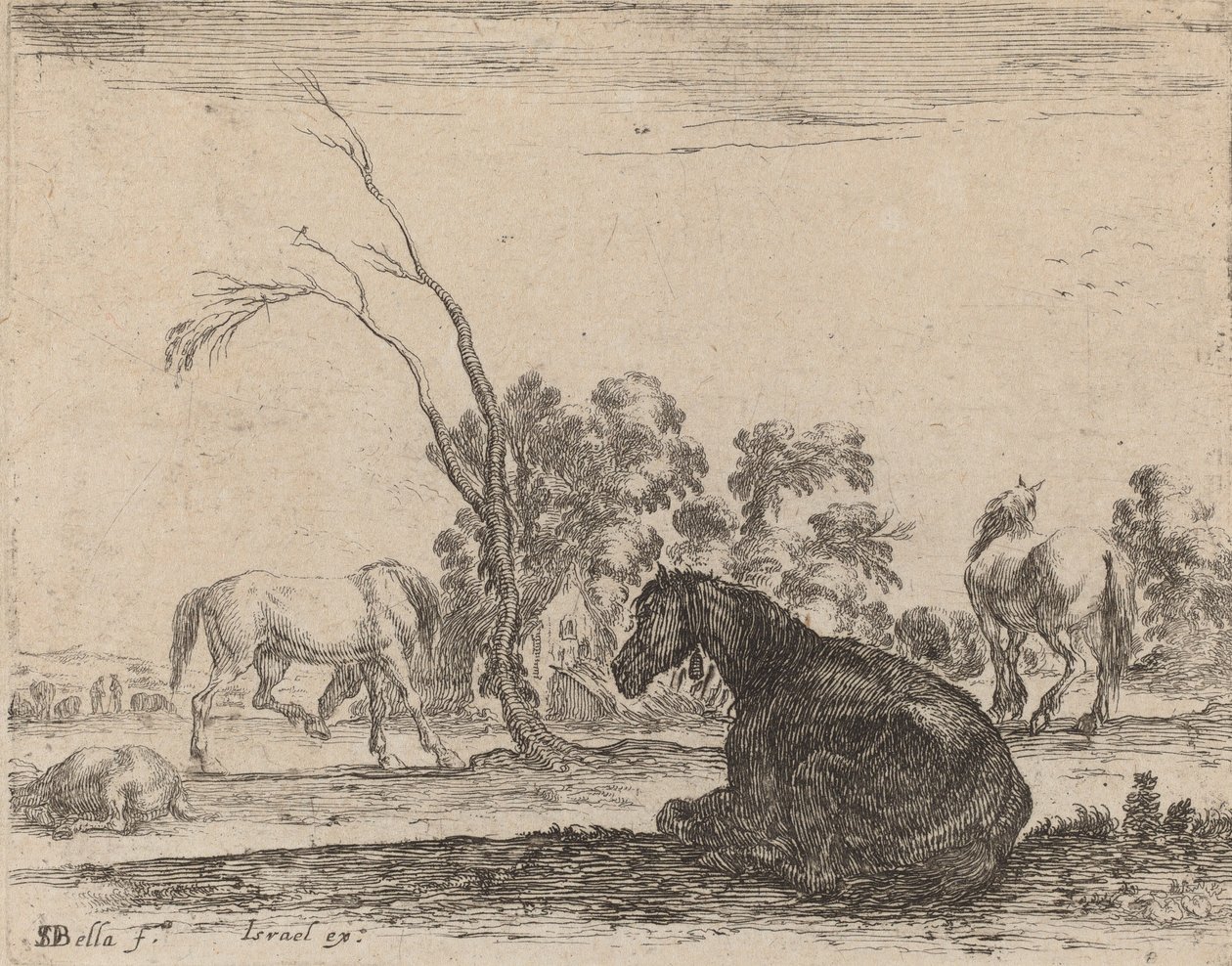 Hester i et beite, 1642.(Horses in a Pasture, 1642. )Stefano della Bella |