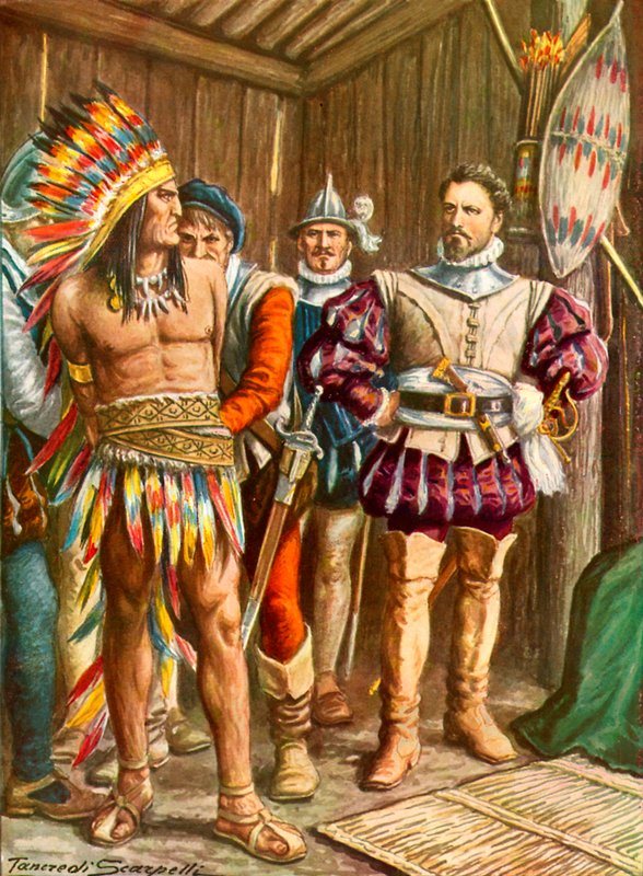 Ferdinando Cortes fengslet Montezuma(Ferdinando Cortes imprisoning Montezuma)Tancredi Scarpelli |