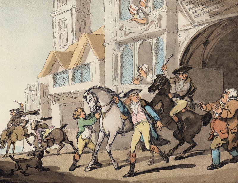 Avsted til en grevlinglokking (litho i farger)(Off to a Badger-Baiting (colour litho))Thomas (after) Rowlandson |