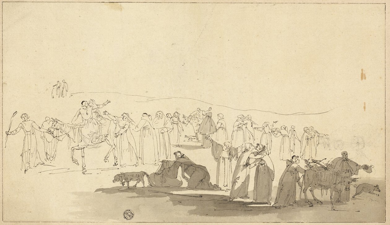 Udatert · Pen and black ink with brush and gray wash, over graphite, on ivory laid paper, laid down on card