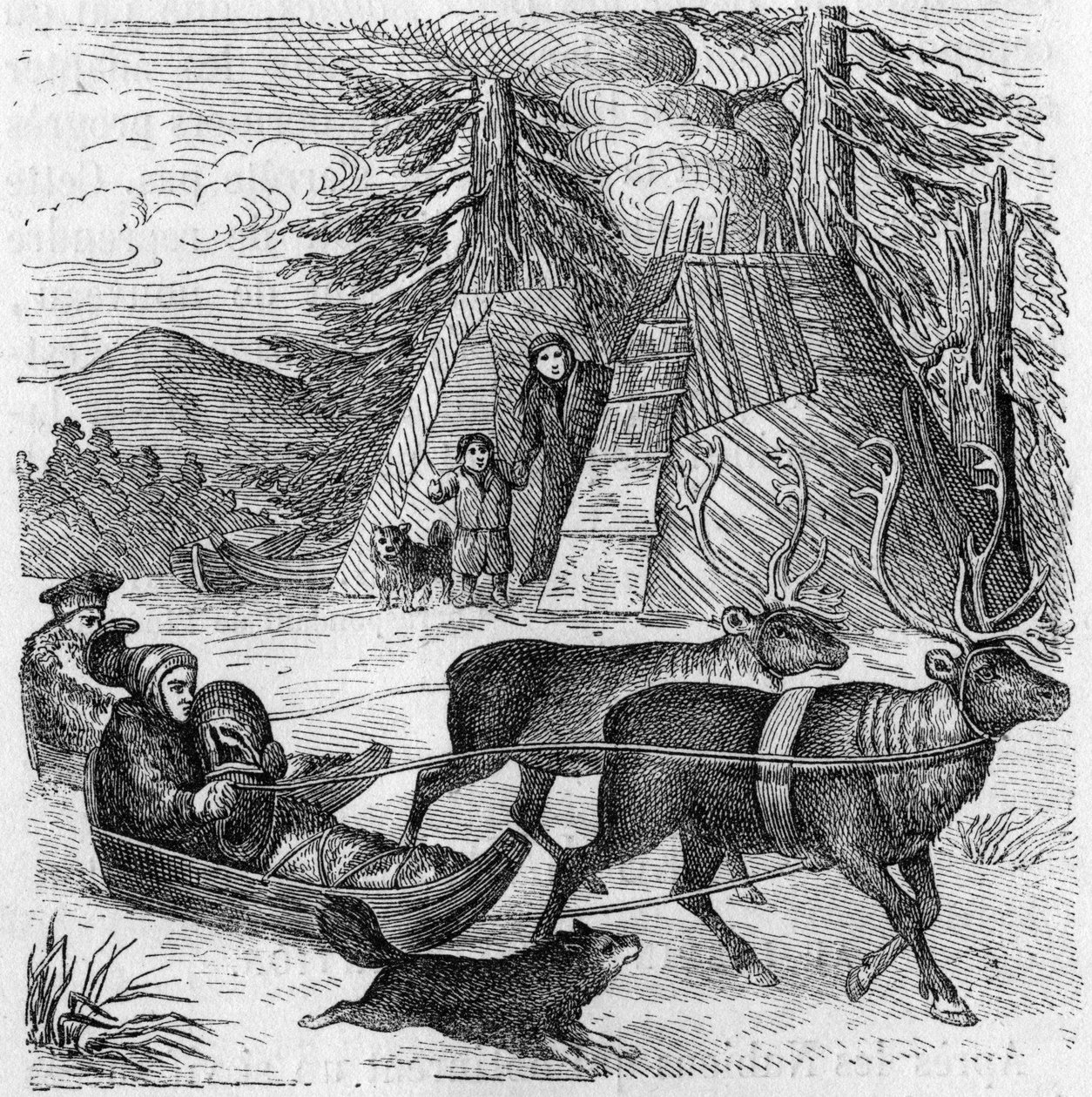 Lapons og deres slede.(Lapons and their sleigh.)Unknown artist |