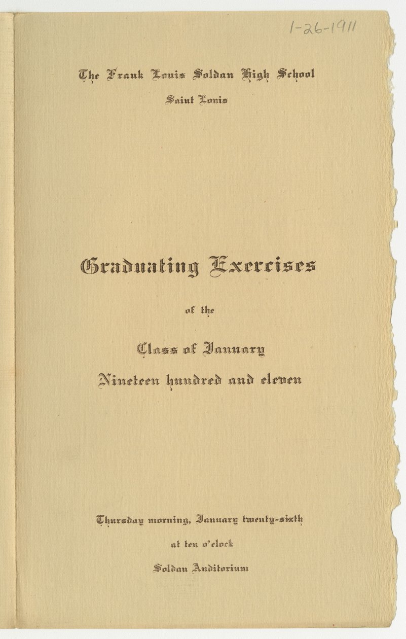 Program for eksamener i klassen januar 1911 ved Frank Louis Soldan High School, St. Louis(Program for graduating exercises of the class of January 1911 at Frank Louis Soldan High School, St. Louis)Unknown |