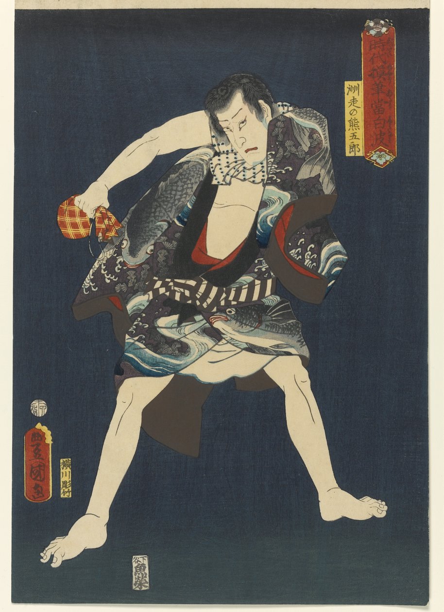 Skuespilleren Ichikawa Kodanji IV som Subashiri no Kumagoro, fra serien Thieves in Designs of the Times, 1859 (farget treblokktrykk)(The Actor Ichikawa Kodanji IV as Subashiri no Kumagoro, from the series Thieves in Designs of the Times, 1859 (colour woodblock print))Utagawa 1786-1864 Kunisada |