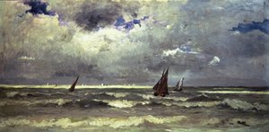 Minamoto no Yoshitsune Encounters the Ghost of Taira no Tomomori, Edo-perioden, 1848-51 (farget treblokktrykk)(Minamoto no Yoshitsune Encounters the Ghost of Taira no Tomomori, Edo period, 1848-51 (colour woodblock print))Utagawa Yoshikazu |