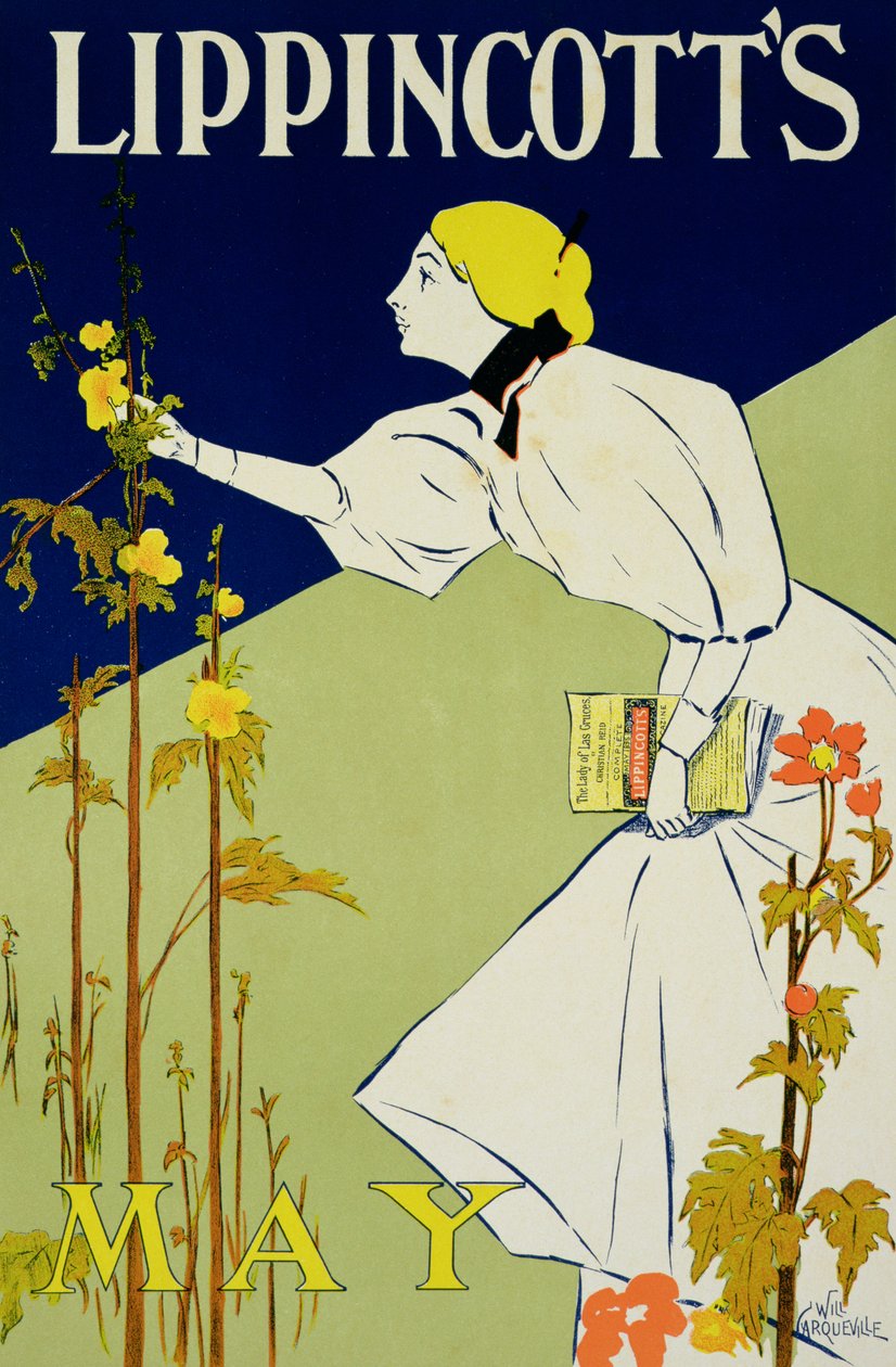 Reproduksjon av en plakat som annonserer 'Lippincott's Magazine, May Issue', publisert i Philadelphia, 1895(Reproduction of a poster advertising 'Lippincott's Magazine, May Issue', published in Philadelphia, 1895 )Will Carqueville |