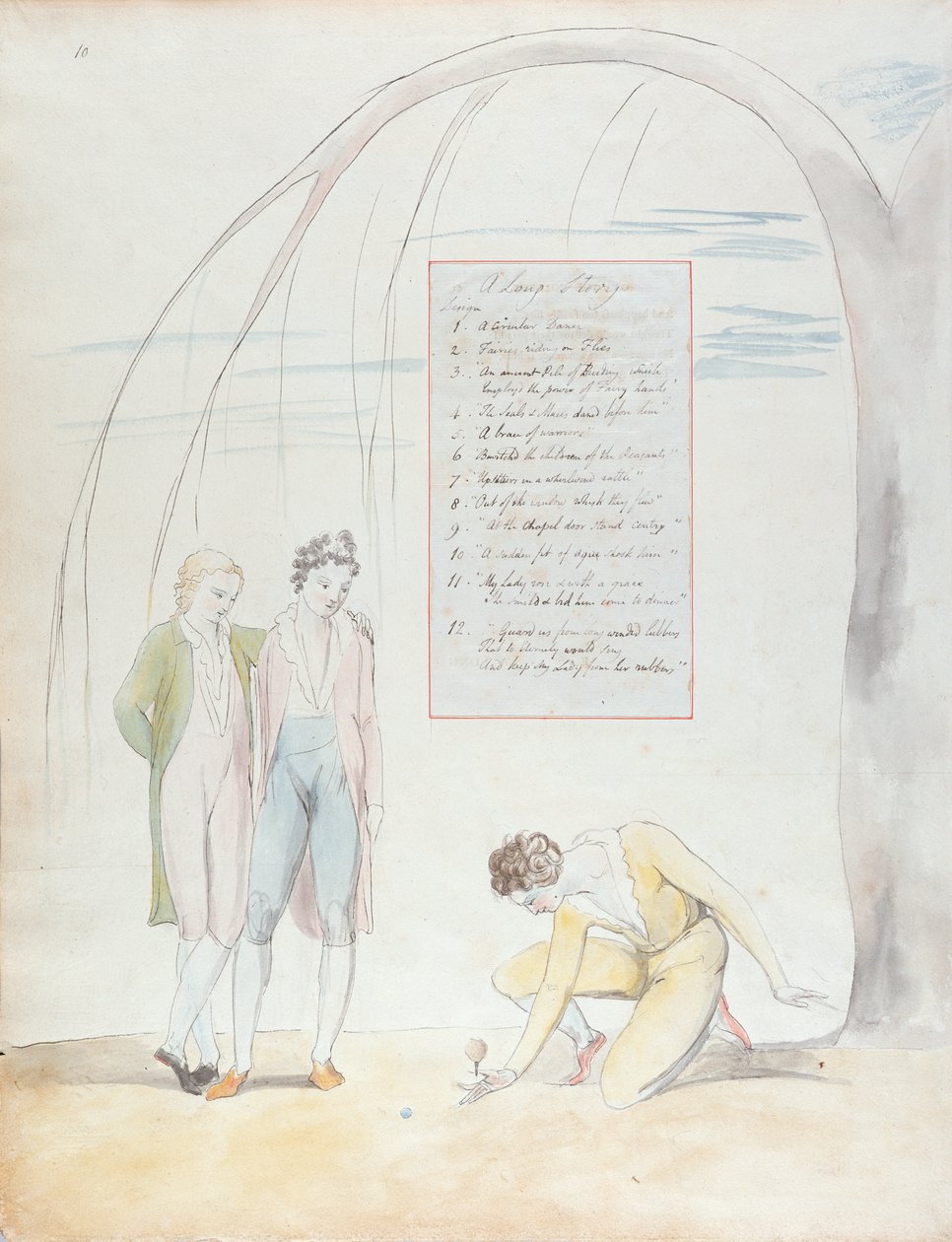 'A Long Story', design 22 for 'The Poems of Thomas Gray', 1797-98 (wc med penn og svart blekk) (se 285541 for recto)('A Long Story', design 22 for 'The Poems of Thomas Gray', 1797-98 (wc with pen und black ink) (see 285541 for recto))William Blake |
